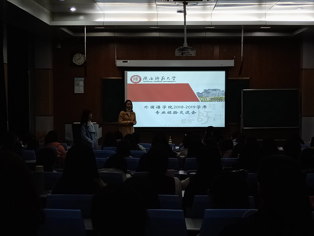 2018年11月7、8日晚7点,best365官方网站登录入口研究生2018-2019学年专业经验交流会于雁塔校区教学四楼4401(专业硕士专场),教学九楼9623(学术硕士专场)顺利举行。参加大会的有best365官方网站登录入口各专业优秀代表以及2018级研一新生。研究生会文艺部成员杨芳,杨柳分别担任主持。