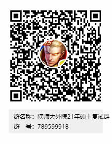 请所有参加复试同学以实名+报考专业,加入陕师大外院21年硕士复试群,后续通知会在群里发布。