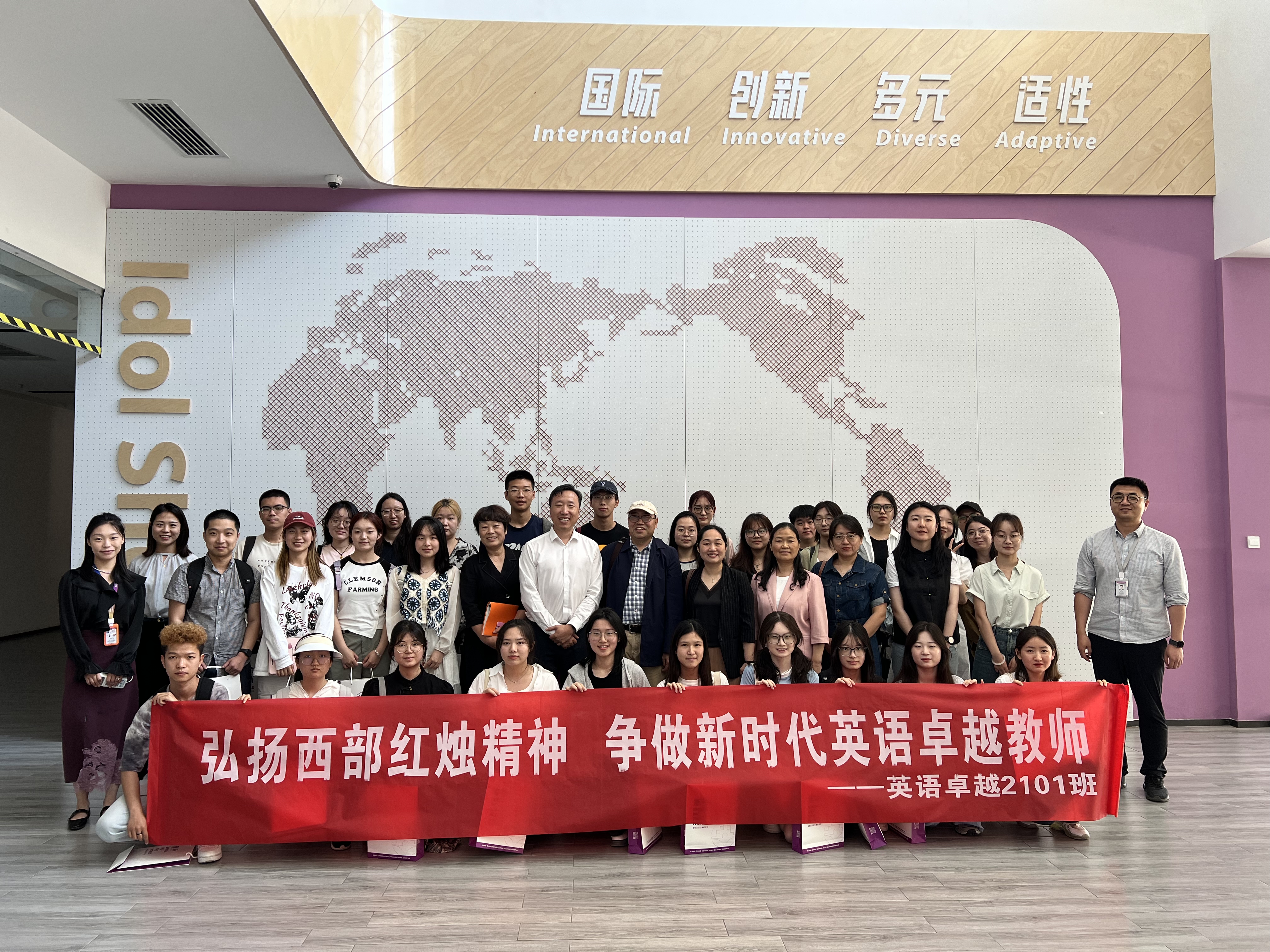 为进一步促进英语师范专业学生的成长与发展,学习优秀学校的英语教学经验,5月10日上午,best365官方网站登录入口2021级英语卓越班公费师范生在学院副院长孙坚教授、院党委副书记鲁燕、卓越班项目主任尚亚宁教授、团委书记李丹老师和辅导员董洁、屈婉婷、邹胜男的带领下前往西安曲江康桥学校开展教育见习活动。