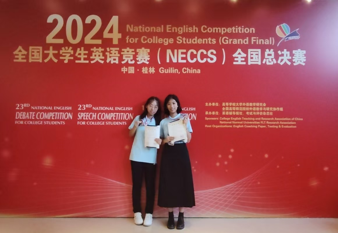 365官网教师崔琳指导2023级马克思主义学院本科生侯舒潆、地理科学学院本科生邓思敏参加2024年全国大学生英语竞赛(NECCS)全国总决赛并取得佳绩。