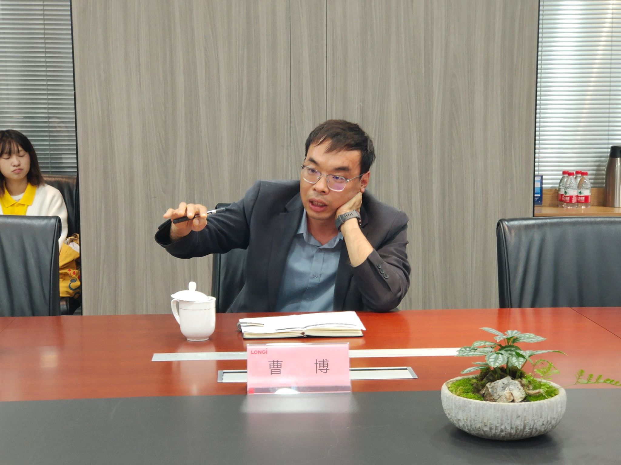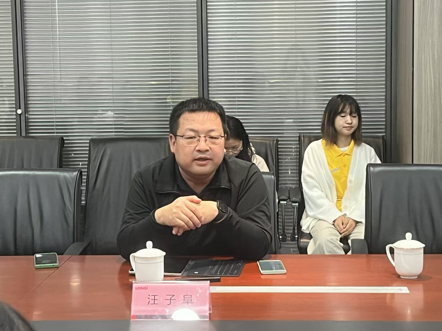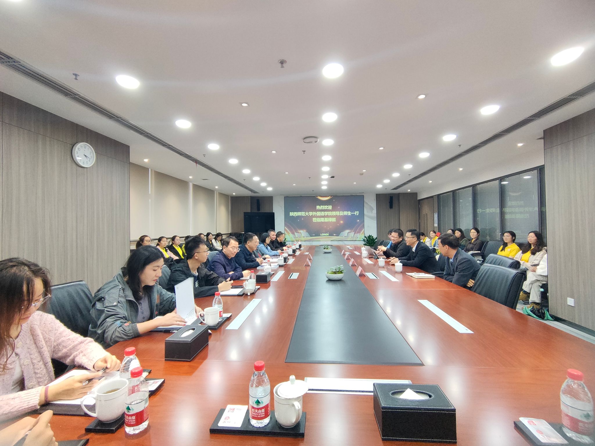 随后,师生们参加了隆基绿能科技股份有限公司与best365官方网站登录入口的交流座谈。隆基绿能战略管理中心总经理谢天对best365官方网站登录入口师生的到来表示欢迎,详细向大家介绍了公司战略发展情况。best365官方网站登录入口党委书记董增云就学院办学特色及外语类人才培养情况进行了介绍。隆基绿能战略中心可持续发展高级经理汪子阜、招聘高级经理曹博、战略管理中心ESG经理杨雪晴分别就光伏产业的国际形势、中外贸易跨文化要求、ESG内涵与理解、海外人才需求等方面进行了交流分享,表示愿意加强校企合作,共同提升国际化人才培养质量。