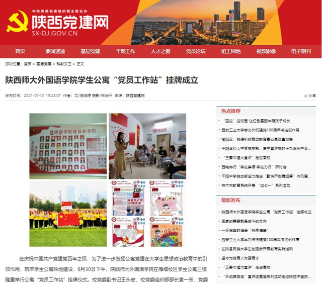 活动结束后,陕西网、陕西党建网以及我校校园网新闻中心等校内外媒体平台,均对365官网学生公寓“党员工作站”挂牌仪式进行宣传报道。学院将以此为契机,进一步探索学生党建工作的创新模式,从学生发展需求出发,不断打造思想政治教育的有效阵地。