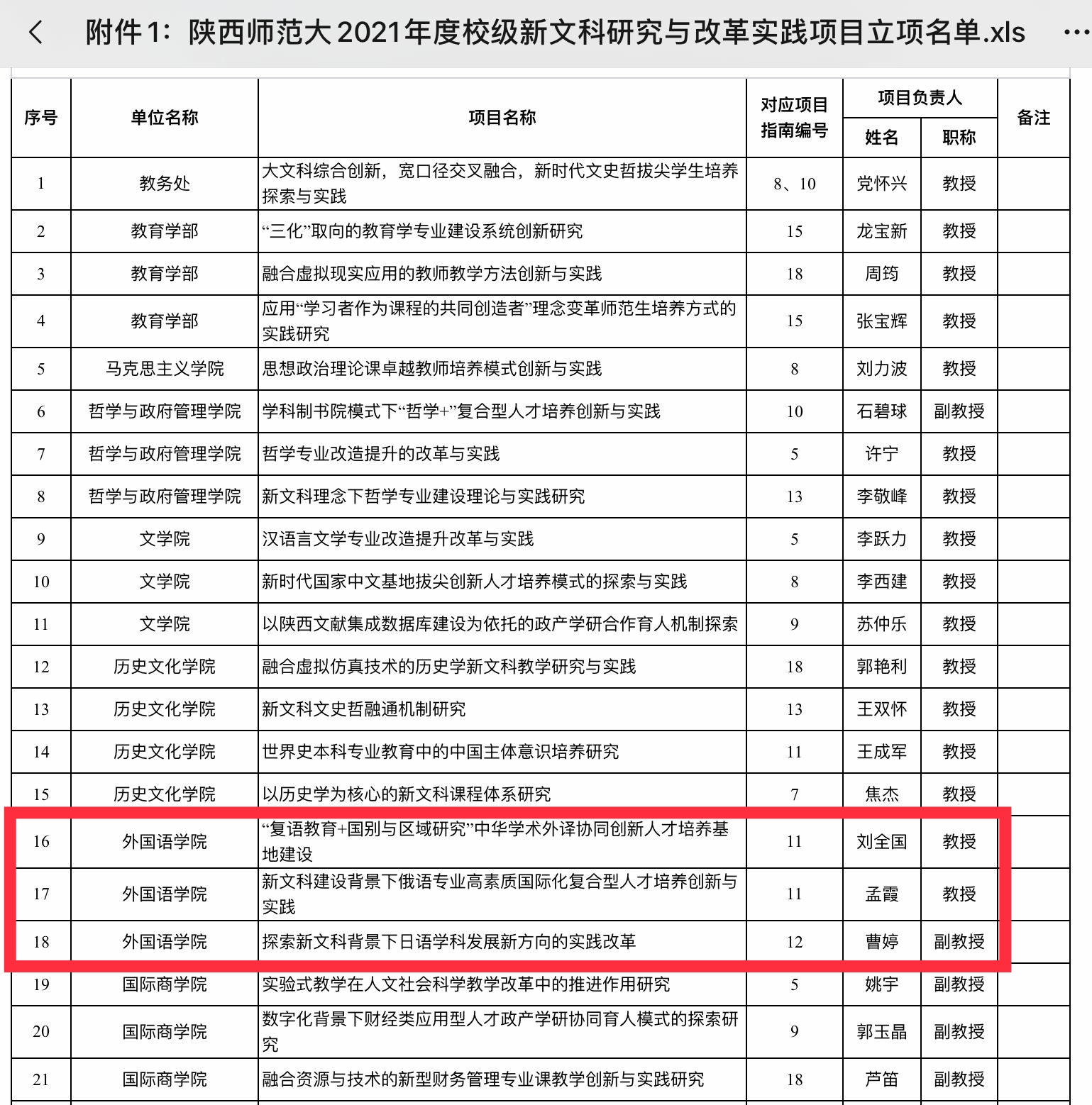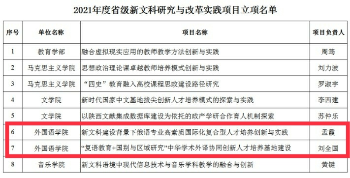同时,365官网刘全国副院长、孟霞教授主持的项目,被学校推荐申报陕西省教育厅并成功获批陕西省新文科研究与实践项目立项。(立项名单见下图)