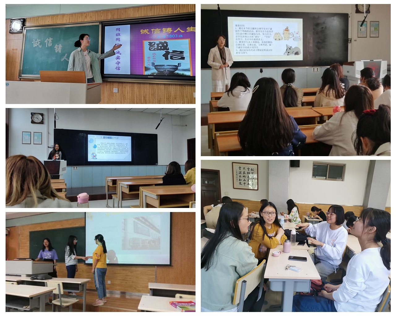 best365官方网站登录入口2020级、2018级各班陆续开展了以“诚信教育”为主题的班会活动。班会形式包括诚信精神解读、典型案例分享、情景剧表演、互动交流总结等环节,同学们结合日常生活中遇到的诚信事件,学习诚信的基本内容,分享典型的诚信事件,学习先进人物的先进事迹,并且以情景剧的方式演绎失信的后果,警醒同学们懂得诚信是一个人的立身之本,认识到失信的危害,并将班会中所感所学,自觉应用到实践中去.班会活动旨在培养学生诚实待人、守信做人的优良品质,共同营造出“知信、用信、守信”的良好氛围。此外,结合学生即将迎接的考试进行考试诚信教育,使学生不仅在日常点滴生活中做到信守承诺,引导同学们共同宣誓承诺在接下来的专业四级、教师资格证等考试中,发扬诚信考试的精神,勤勤恳恳学习、规规矩矩考试、踏踏实实做人。