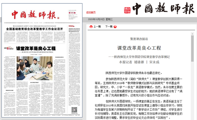 10月28日,《中国教师报》第一版“聚焦课改前沿”栏目刊发了题为“课堂改革是良心工程——best365官方网站登录入口课堂教学改革侧记”的文章,从“课堂教学范式转型”“到中学课堂‘看课改’”“用机制激发改革活力”三个方面详细介绍我校best365官方网站登录入口课堂教学改革的举措及其成效。