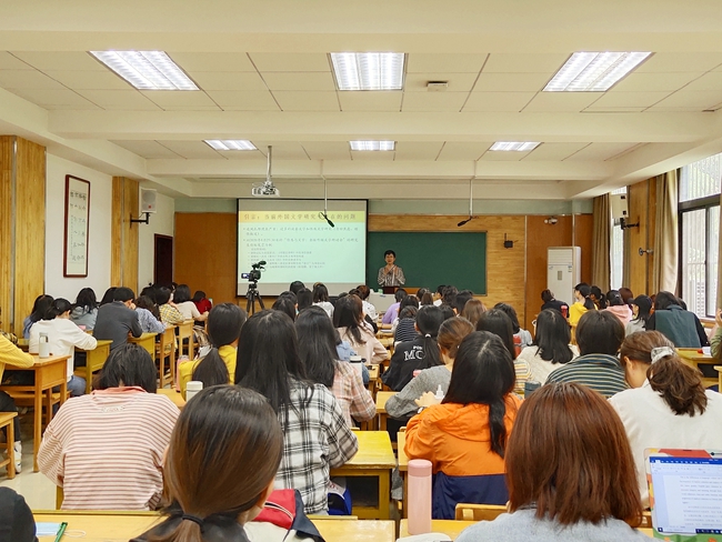 针对研究生的讲座中,代显梅教授首先结合自身求学之路和参会经历分析了当前研究生学习中存在的一些研究问题和困惑,并引用霍桑、亨利·詹姆斯等经典作家的事例建议研究生在科研过程中潜心阅读、沉淀自我,有独立思维和见解。随后,代教授从作者素质、读者素质、阅读内容、阅读技巧四个方面阐释文学研究的目的和方法,强调在阅读过程中回归经典、关注细节、培养心智的重要性。接下来,代教授以社会心理学家埃里希·弗洛姆的《存在的艺术》为导言,以英美19-20世纪的经典作家为范例,通过对西方文论史上有关文学家、文学作品和读者资质的回顾,引导在座师生在文学研究中关注全人类,不局限于单一民族或性别。最后,代教授以“修行、觉悟、传承”六字作为结语,希望研究生能够将广泛阅读和有辨别力的阅读相结合,夯实学术基础,传承人文情怀,以兴趣激发灵感,用灵感书写思想。代教授的讲座生动激昂,富有极强的感染力,增强了与会老师和学生对文学研究的热爱之情。