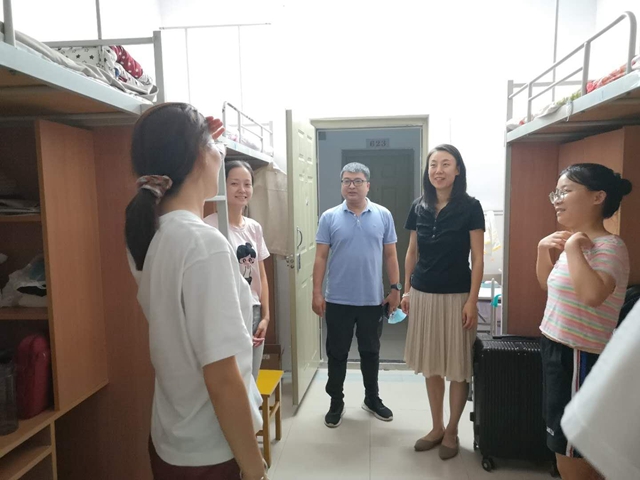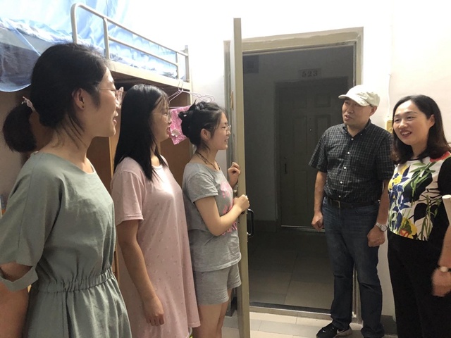 9月6日晚,学院党委书记马正平、副院长刘全国、副院长孙坚、副院长曹婷、党委副书记鲁燕、办公室主任王幸生以及研究生辅导员董洁走进2020级研究生新生宿舍,亲切询问新生入学情况并沟通交谈,使新生们感受到了来自学院老师的关怀。9月8日晚,辅导员董洁召开了新生见面会,对于新生入校后的教育管理服务做了详细的引导和说明。