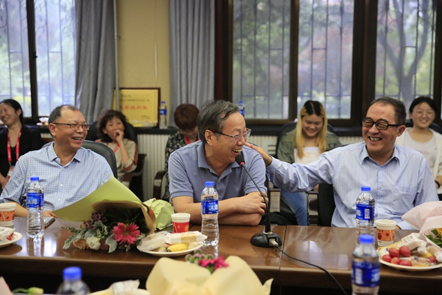 最后,学院向校友们赠送了纪念品——致外语系九零届毕业生的一封信、印有校友们姓名的定制印章、印有师大校训的折扇。王启龙院长代表学院接受了本届校友们的著作书籍,座谈会在师生热烈的掌声中圆满结束。