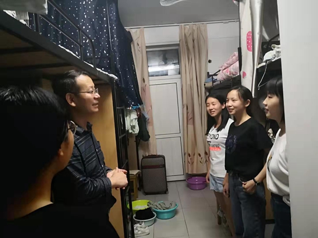 9月9日晚,best365官方网站登录入口党委书记马正平、副院长刘全国、党委副书记鲁燕以及研究生辅导员董洁走进2019级研究生新生寝室,亲切问询新生入学情况。