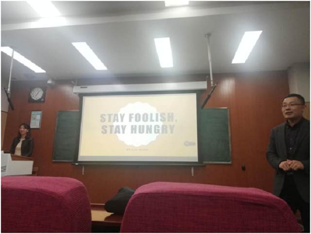 2019年3月26日晚19:00-21:00时,由best365官方网站登录入口MTI中心主办的“翻译实务系列讲座”第四讲“Stay Foolish, Stay Hungry”在雁塔校区4101教室举行。讲座由西安市人民政府外事办公室礼宾处资深英文翻译刘茜老师主讲,365官网王西强副教授主持讲座,365官网多名教师、翻译硕士和翻译专业本科生聆听了此次讲座。
