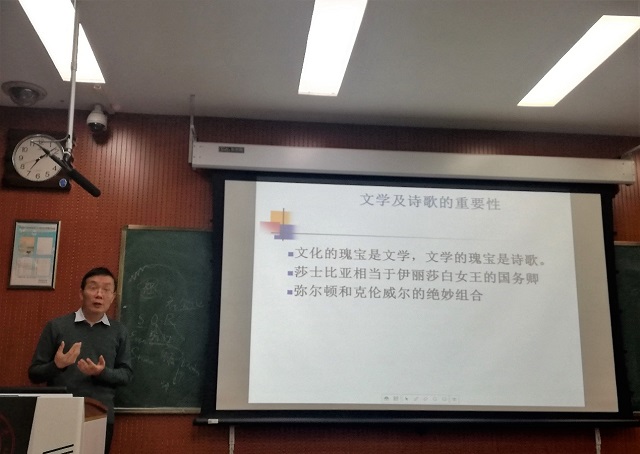 2019年3月19日晚19:00,由best365官方网站登录入口MTI中心主办的“翻译实务系列讲座”在我校雁塔校区4101教室举行。本场讲座的主题为“英语诗歌的翻译与‘三美’原则”,由研究英美诗歌、小说,早期现代英国文学,诗歌与文化翻译的刘庆松博士主讲,操林英副教授主持讲座,best365官方网站登录入口多名教师、翻译硕士和翻译专业本科生聆听了讲座。