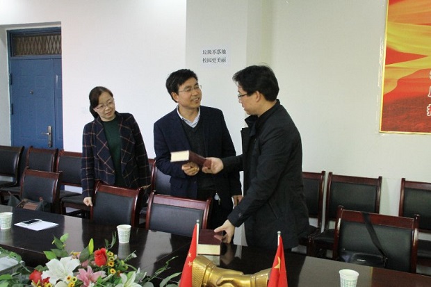 会议交谈后,刘院长代表学校向杨凌高级中学的教导主任赠送了师大纪念品,并代表学校向在座的实习生分发了师大的慰问品,此外同在座的实习生以及杜主任在校园合影留念。