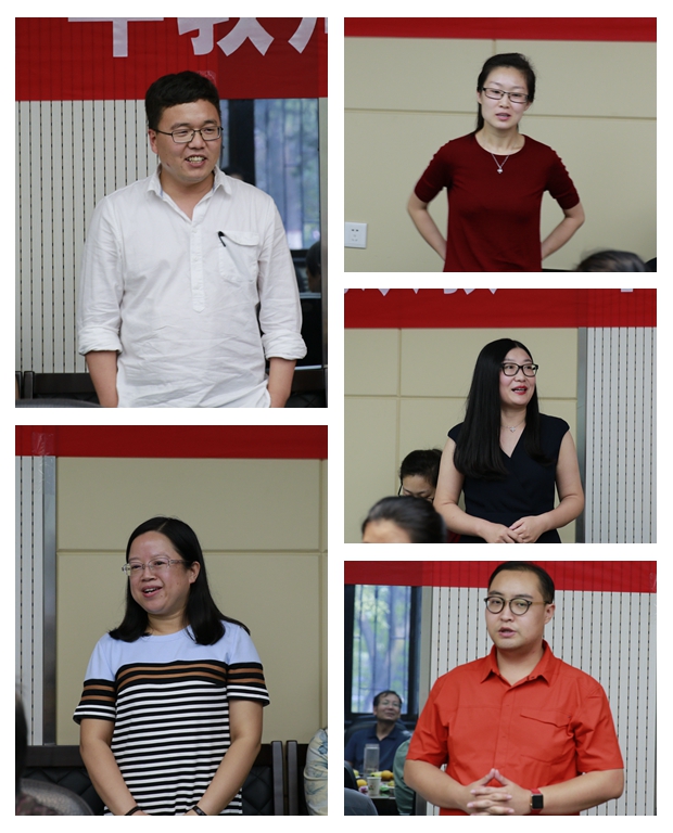随后,与会新进教师向老教师献花,大家一起合影留念。
