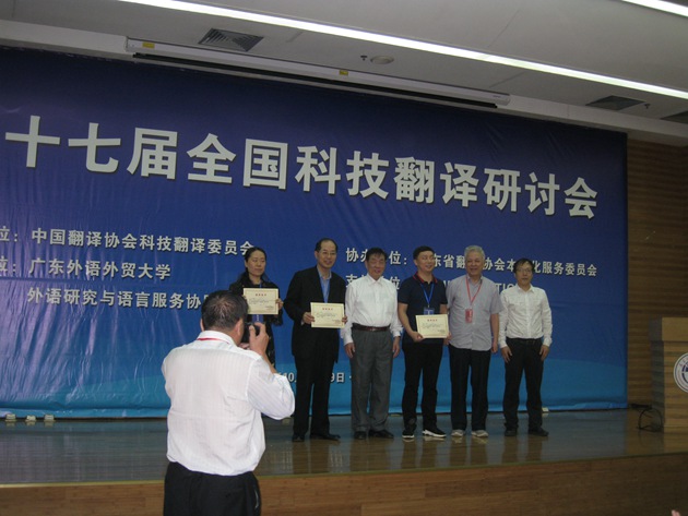 10月28-29日,第十七届全国科技翻译研讨会在广东省广州市召开。本次研讨会由中国科学院科技翻译协会和中国翻译协会科技翻译委员会主办,广东外语外贸大学承办。中国科学院院士、资深翻译家李家春研究员等200多名来自中国科学院、北京大学、清华大学、英国伦敦大学学院等国内外翻译界专家学者参加了会议。best365官方网站登录入口白靖宇教授应邀参加本次研讨会并获优秀论文一等奖。