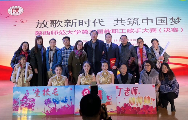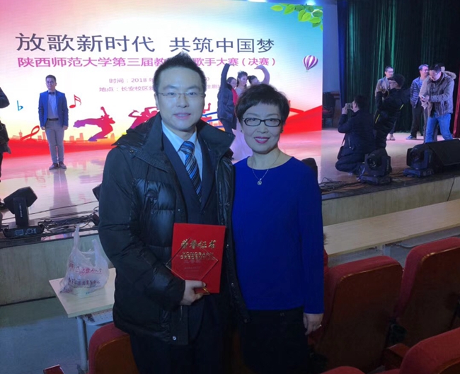 1月18日,best365官方网站登录入口“放歌新时代,共筑中国梦”第三届教职工歌手大赛决赛在长安校区新勇活动中心进行。联系365官网校领导党怀兴副校长与365官网进入决赛选手丁礼明老师,共同出演。党校长慷慨朗诵《短歌行》,丁礼明老师演唱狮子王主题曲《Can You Feel The Love Tonight》,365官网本科毕业生为节目伴舞。经过激烈角逐,丁礼明荣获大赛三等奖,为365官网捧回一个奖牌。
