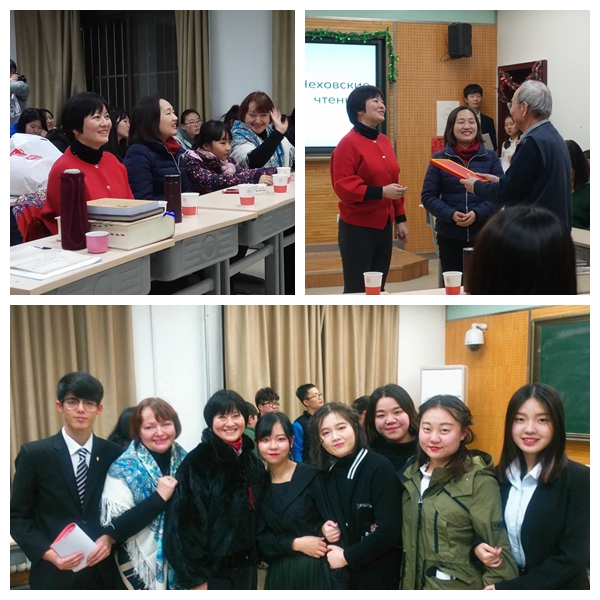 1月5日best365官方网站登录入口俄语系、best365官方网站登录入口俄语中心顺利举办“契诃夫阅读日”,我系师生欢聚一堂,共同领略作家契诃夫的文采魅力。师大俄语系师生用手绘,话剧,诗朗诵,歌曲的形式表达对作家崇高的敬意以及对俄语的热爱,整个活动气氛热烈,异彩纷呈。best365官方网站登录入口鲁燕副院长、best365官方网站登录入口原公共外语教学部俄日法教研室主任陈斌教授出席本次活动并致辞。