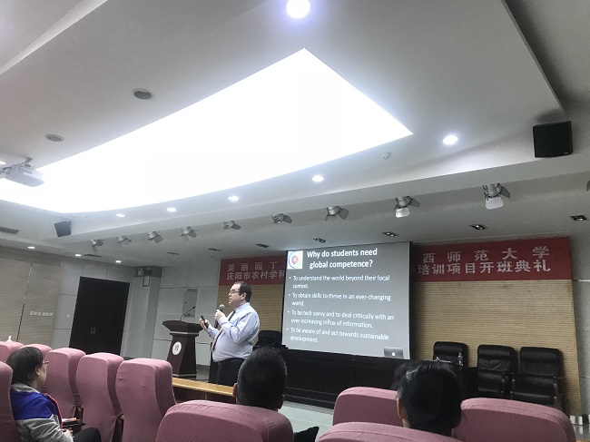 讲座伊始,来自best365官方网站登录入口的副院长孙坚为来自全国各地的老师及学生介绍了best365官方网站登录入口的基本情况,并对布恩教授的来访表示热烈的欢迎。布恩教授通过互动的方式开始了他的演讲。布恩教授首先解释了整体能力包含的四个领域以及学生需要发展这种能力的原因。接下来,他为大家分享了应用于教学过程中的形式多样的课堂活动,并积极和老师同学们互动,模拟各种形式的活动。现场气氛活跃,老师和同学们对布恩教授所设计的活动表现出极大的兴趣。最后,几位老师向布恩教授提出问题,布恩教授对此做出具体解释。