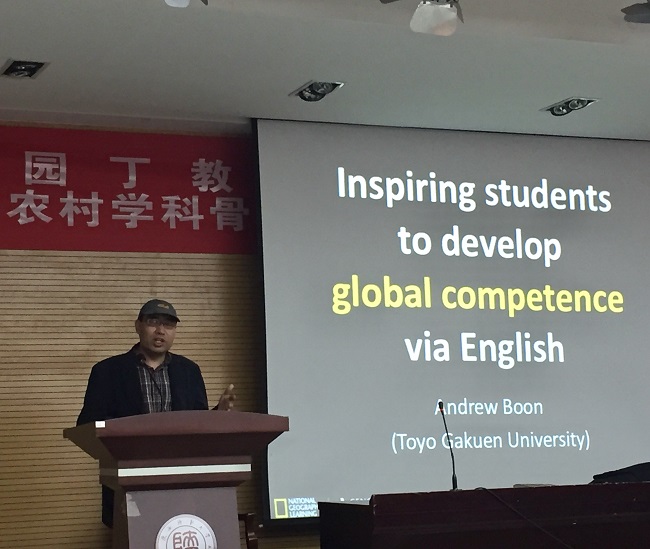 2018年4月9日,由best365官方网站登录入口及上海外语教育出版社主办的《国家地理》2018中国巡讲在best365官方网站登录入口雁塔校区举行。应邀参加的主讲人是来自英国阿斯顿大学应用语言学博士、日本知名私立大学东洋学院大学教授安德鲁•布恩,同时他也是《全新版进阶-视听说教程》的作者。布恩教授以“如何通过英语激励学生发展整体能力”为题为各位师生作了精彩的汇报。