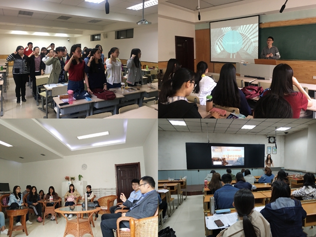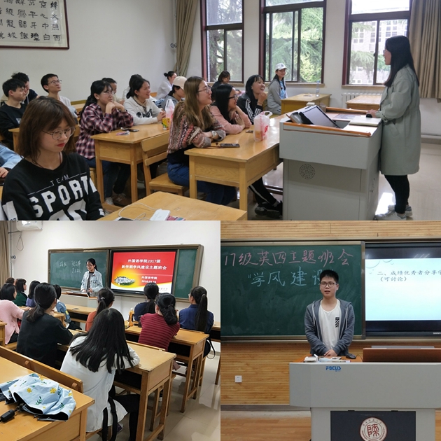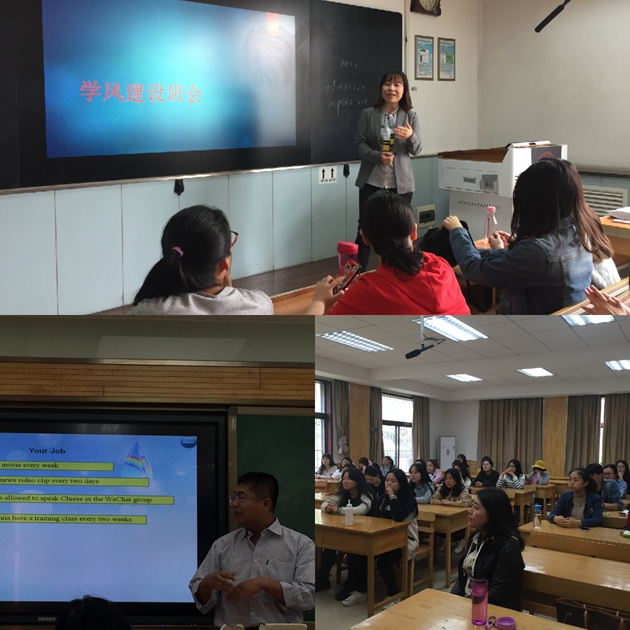 曹春阳老师在2015级师范5班举办了专业技能指导沙龙,通过介绍先进多媒体课件的使用及微课制作方法的教学,帮助同学们进一步掌握先进的教育教学技术。王西强老师结合自身经历在2016级翻译班讲述了他的读书生活,并鼓励同学们专注自己感兴趣的领域,拓宽眼界,争做一个“丰富”的人。李伟芳老师针对2016级俄语班即将到来的专四考试,积极组织同学们规划适合自身的学习计划、分享复习经验。戴琨老师组织2017级外文2班学生观摩研究生模拟答辩并进行讲解,帮助学生了解学科发展前沿,熟悉答辩过程及专业论文写作规范及要求,为今后论文撰写奠定基础。乐燕子老师参加2017级日语班的学风建设班会,从学习、生活及未来规划三个方面对学生提出了建议,鼓励同学们要充分利用大学资源提高专业素养。杨盛兰老师在2017级师范1班通过讲述自己的求学经历和所见所闻鼓励大家多读书,开阔眼界,树立更高的人生追求。陈蕾老师参与了2017级师范2班的学风建设班会,从专业学习的角度给同学们提供了学习方法分享和大学经验。张春娟老师针对2016级师范4班同学们在英语学习方面的短板提供了具体的指导。马珊老师和王勤老师也分别在2015级日语班和2016级师范3班为同学们提供了学习指导。