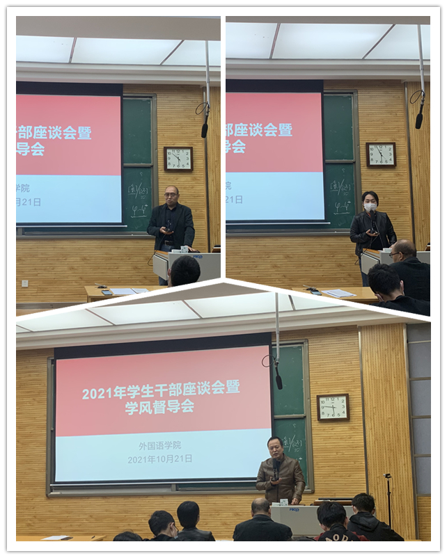 接着,在场的学生骨干就同学们在课程教学、学习活动、生活后勤以及其他方面的问题进行了发言,在听取了同学们的反馈后,孙坚就学生提出的有关教学方面的问题,董增云就学生提出的生活、发展方面的问题代表学院给予了一一回应。鲁燕结合自身经历引导学生干部进一步理解自身定位,发挥好先进模范带头作用,积极为同学们做好服务工作。