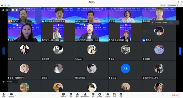 当日下午,三个分论坛同时进行。分论坛一“中外基础教育比较研究”在西安铁一中教师崔媛和best365官方网站登录入口教师陈萍萍主持下开展。来自西安教育科学研究所、陕师大附中、西安二十六中、西外附中、西安中学国际课程中心、西安交大附中国际课程中心、高新一中国际部、西安铁一中国际班的11位英语教研专家就中外基础教育话题交流分享,并与线上学生积极互动。分论坛二“青年全球素养培育与提升”由best365官方网站登录入口党委副书记鲁燕和学院教师巢玥主持。来自东北师范大学best365官方网站登录入口、北京师范大学外国语言文学学院、西南大学best365官方网站登录入口、华东师范大学外语学院、内蒙古师范大学best365官方网站登录入口、西安交通大学best365官方网站登录入口、西北大学best365官方网站登录入口、西安外国语大学英语师范学院·教育学院、西北工业大学best365官方网站登录入口的11位党委副书记从外语人才全球素养培育及典型工作方面积极交流。分论坛三“外语类大学生生涯发展与选择”由best365官方网站登录入口团委书记李丹主持,学院辅导员及学生骨干、我校“高层次国际化人才培养创新实践项目”学员、留学生等20余人参与了论坛,从生涯发展角度各抒己见,积极交流,best365官方网站登录入口原党委书记冯武鸣进行了总结点评。