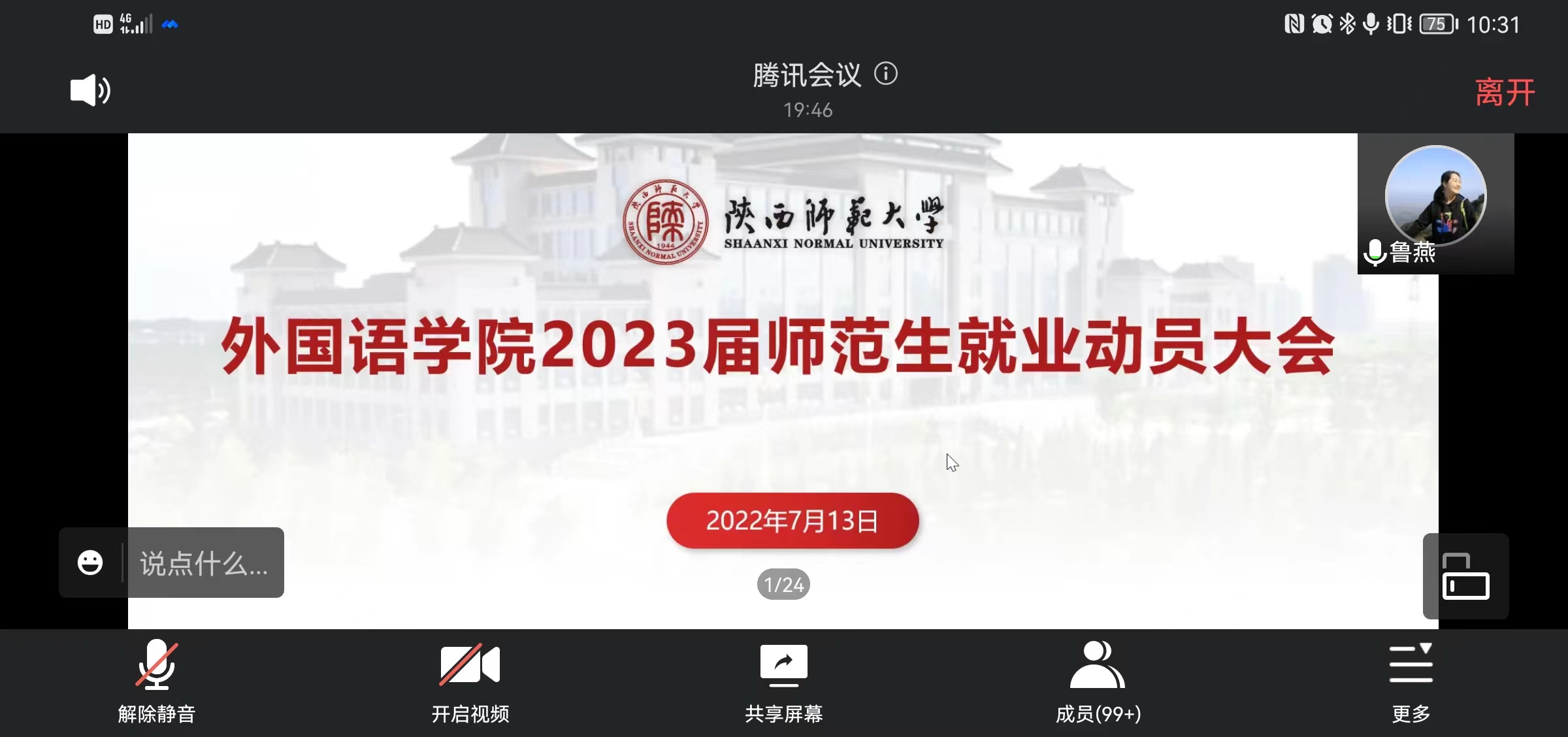 为保障2023届师范生教育教学实习高质量完成,为师范生就业奠定良好基础,7月13日上午,best365官方网站登录入口通过线上形式召开2023届师范生实习就业动员大会。学院党委副书记鲁燕,英语系副主任丁礼明、王立永,2022届带队教师张春娟,2019级远程学科指导教师王辉、罗雅晖、闫军利、李立茹、刘丹、祁喜鸿,教学秘书高红英,辅导员屈婉婷,2022届师范生张润舒以及2023届英语公费师范班全体学生参会。动员会由best365官方网站登录入口副院长孙坚老师主持。
