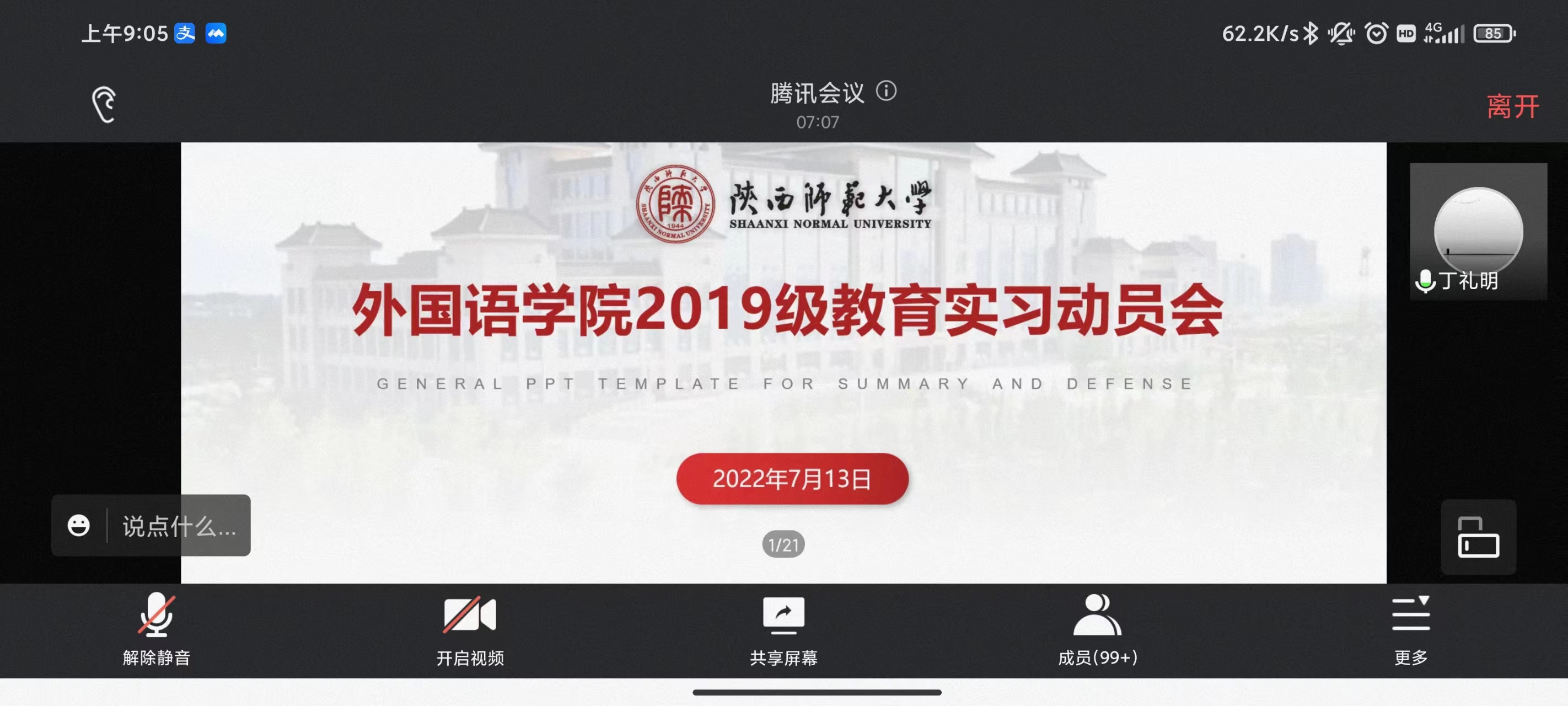 丁礼明老师向同学们介绍了教育教学实习的相关政策,鼓励同学们要珍惜和利用好实习平台;王立永老师勉励同学们在实习中要不断打磨课程,提升自己的教学能力;刘丹老师希望同学们在遇到困难时积极与老师们沟通,远程指导老师们通过线上为大家答疑解惑;屈婉婷老师从心理试调和实习管理两个角度叮嘱同学们遇到困难时主动求助,在提升教学能力的同时,更要注重涵养师德师风,提升职业素养;教学秘书高红英老师对实习管理和考核办法进行了详细的说明,要求同学们认真及时完成各类实习总结材料。