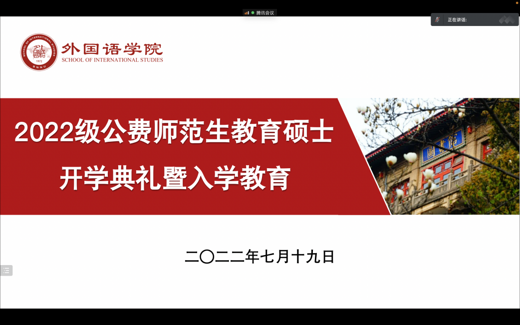 7月19日上午10:00,best365官方网站登录入口通过腾讯会议平台成功举办了“2022级公费师范生教育硕士开学典礼暨入学教育”大会。