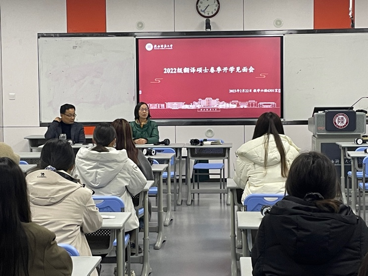 岁序更替,新元肇启。年味散去,暖阳浮空,明媚的春天已经来临,怀着美好的憧憬,我们迎来了新的学期。2月22日晚上,best365官方网站登录入口2022级翻译硕士春季开学见面会在雁塔校区6301教室举行。学院党委副书记鲁燕、副院长吕敏宏、MTI中心王西强教授、巢玥老师及2022级全体翻译硕士研究生参见了见面会。会议由巢玥老师主持。