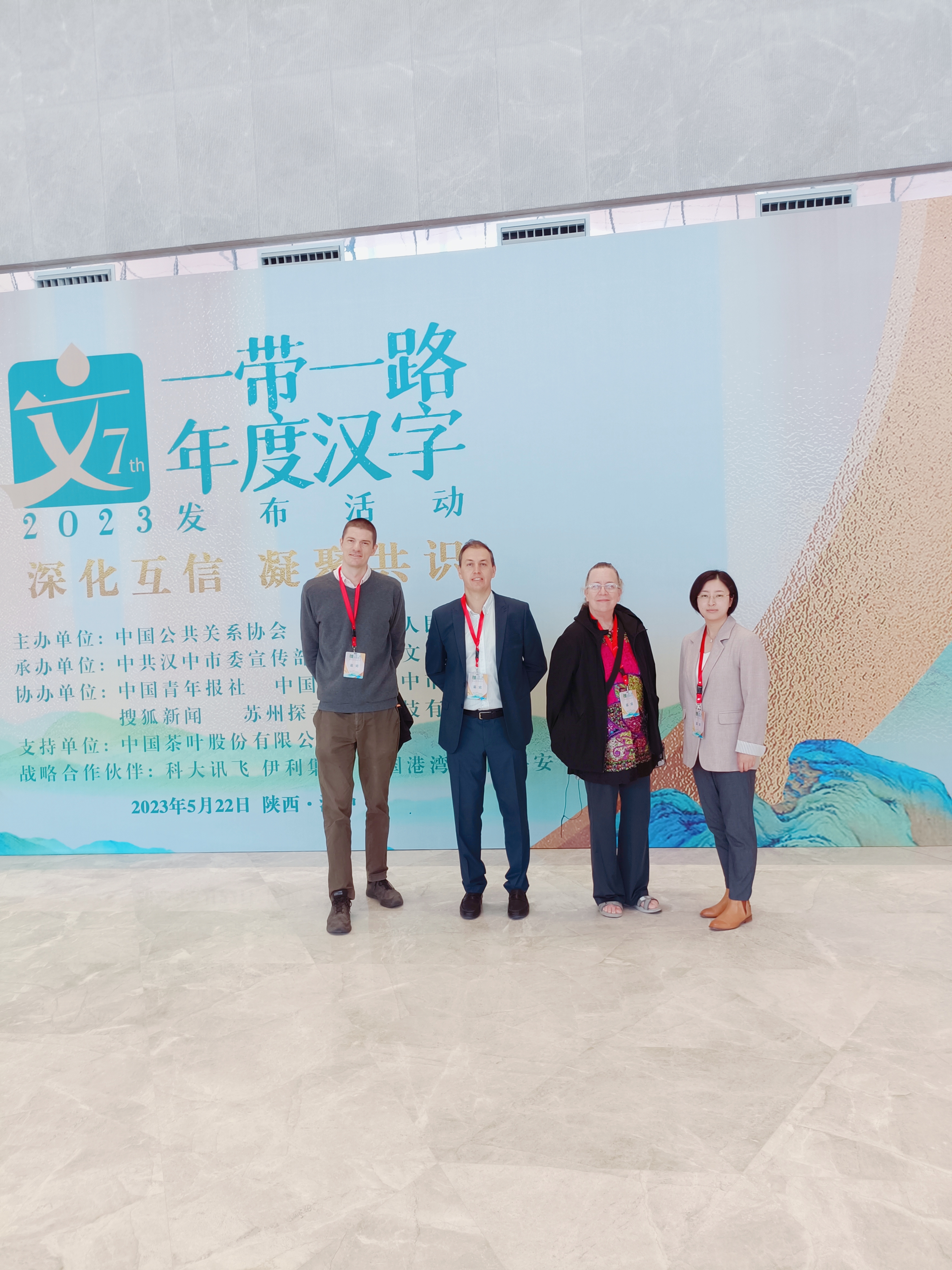 2023年5月22日,由中国公共关系协会和汉中市人民政府主办的2023“一带一路”年度汉字发布大会在陕西省汉中市召开,约有800人参加本次会议。中共汉中市委书记张烨,政协陕西省十二届委员会副主席魏增军,中国公共关系协会会长、国务院新闻办公室原副主任郭卫民出席大会并分别为大会致辞。best365官方网站登录入口派出由英语系教师范莎博士作为领队,外籍教师Mary Beth Leatherman(美国)、Jack Daniel Bouquet(英国)及Philippe Emmanuel Cousté(法国)为成员的代表团应邀参加本次会议。