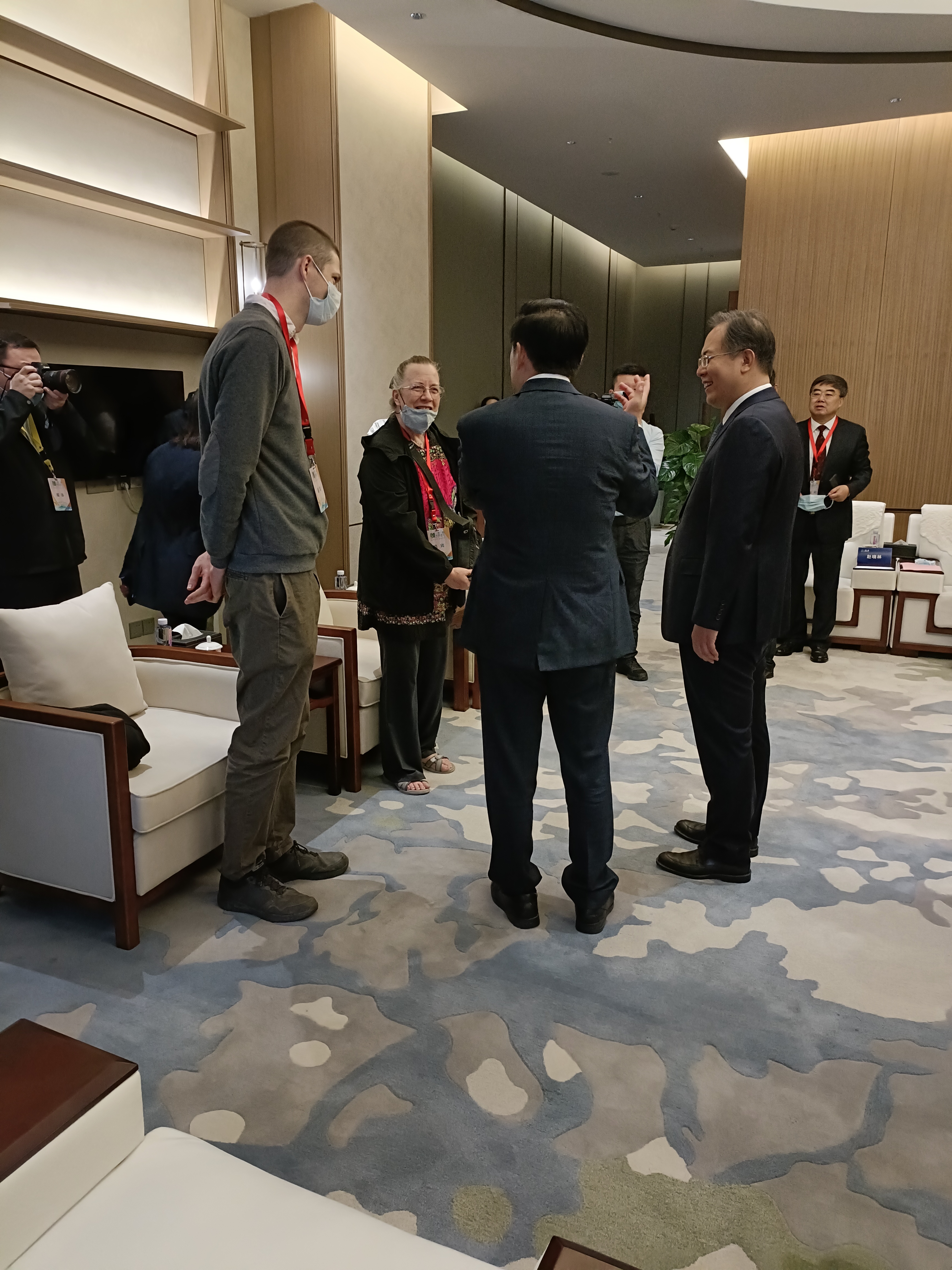 图2 中共汉中市委书记张烨与365官网外教会面交谈