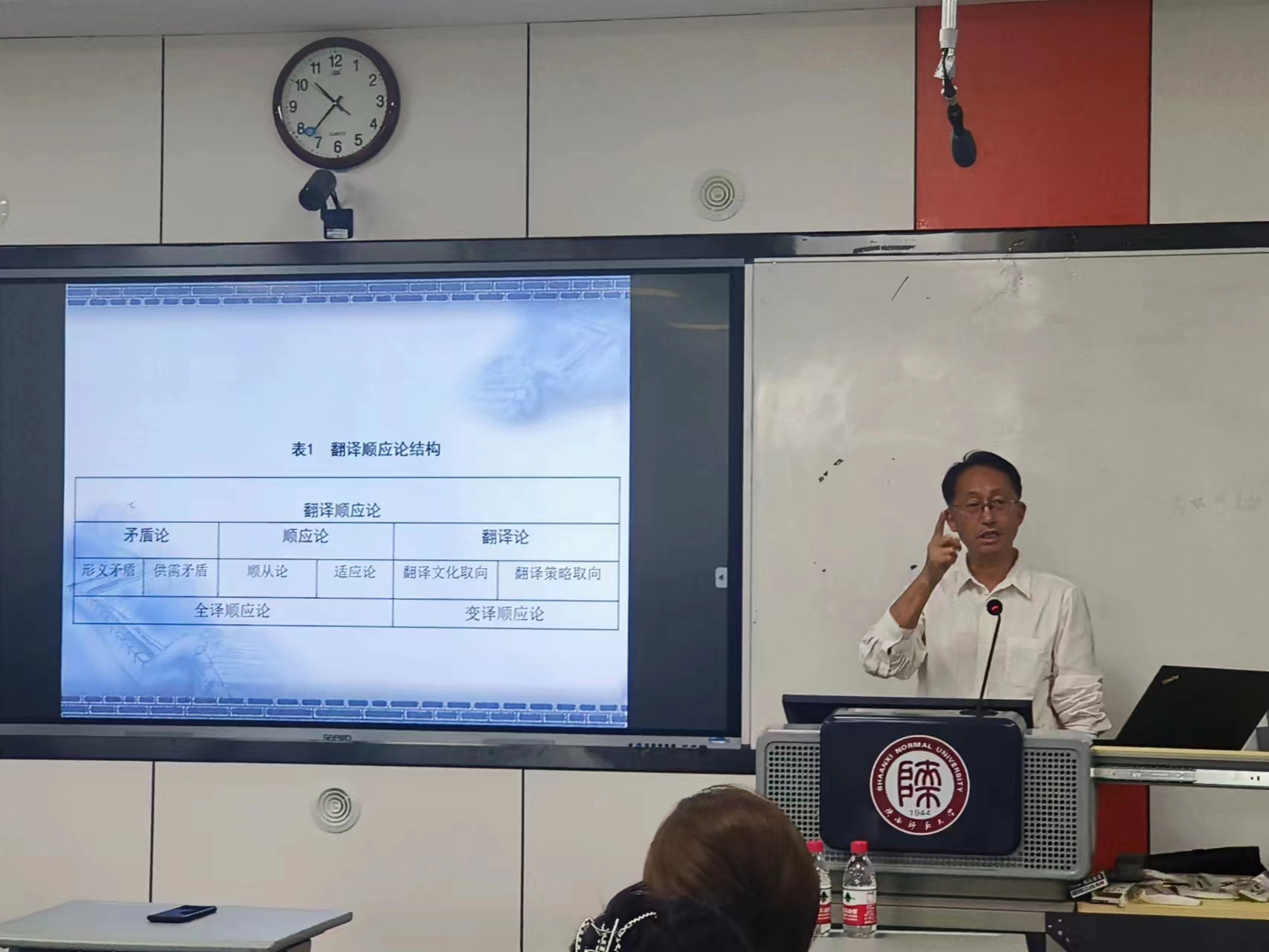 黄忠廉教授从“顺应及其溯因”、“翻译矛盾与顺应的结构”、“破解供需矛盾的变译是大顺应”、“变译顺应论旨在解决供需大矛盾”、“变译以原作顺应译语三特需求”等五个方面出发,提出了许多对学术研究的深刻见解,并鼓励365官网师生们用心观察生活,善于发现、善于感悟,寻找生活、社会乃至国家层面具有研究价值的课题。