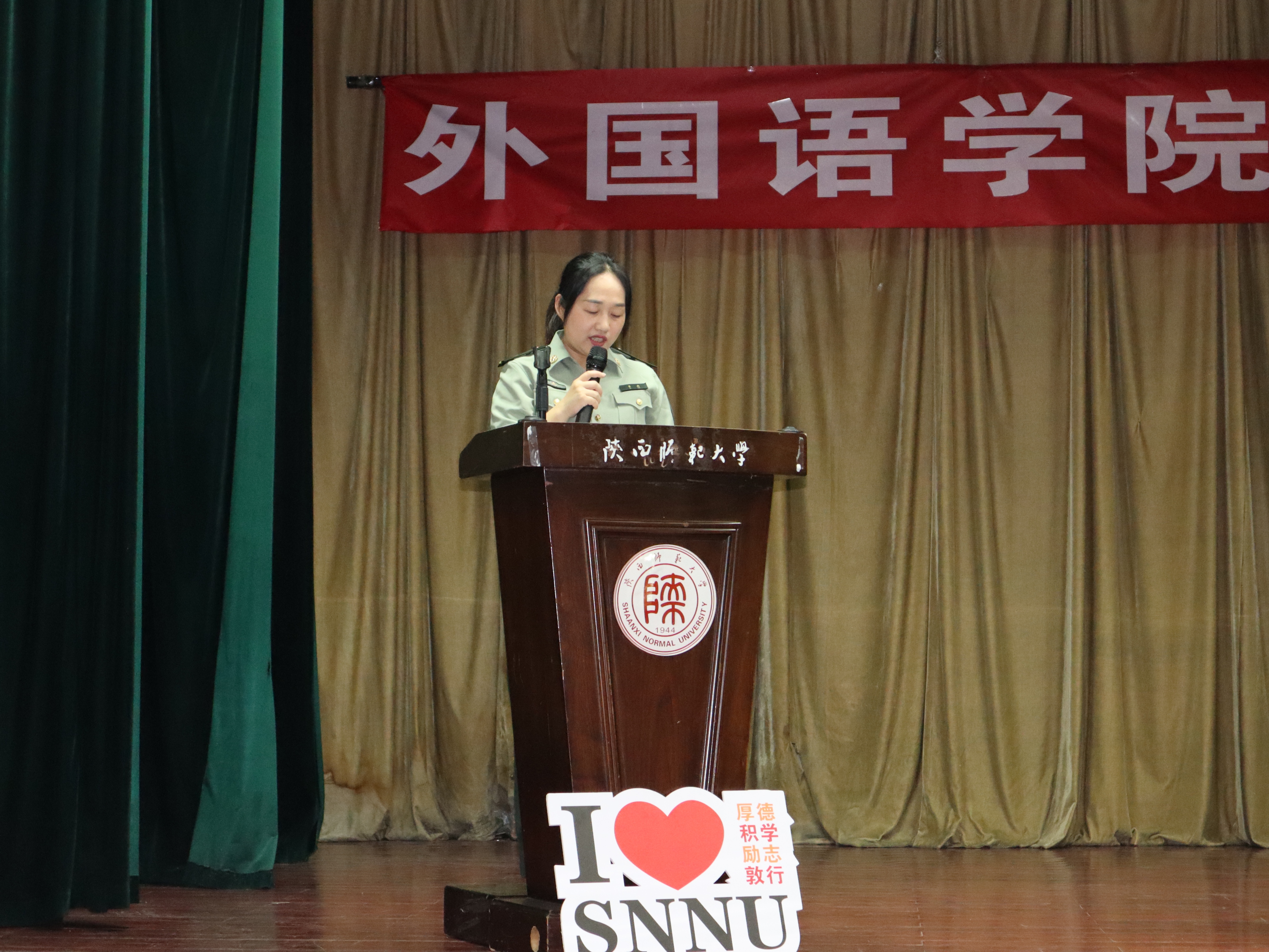 本科新生代表优师2301班任萱译同学发言。她分享了自己与师大和外院相遇的美好经历,对老师们的殷切关怀表示感谢。表示将担当教育报国使命,用才华点燃西部教育之火,做新时代外语全人,坚定理想信念,回馈国家民族。