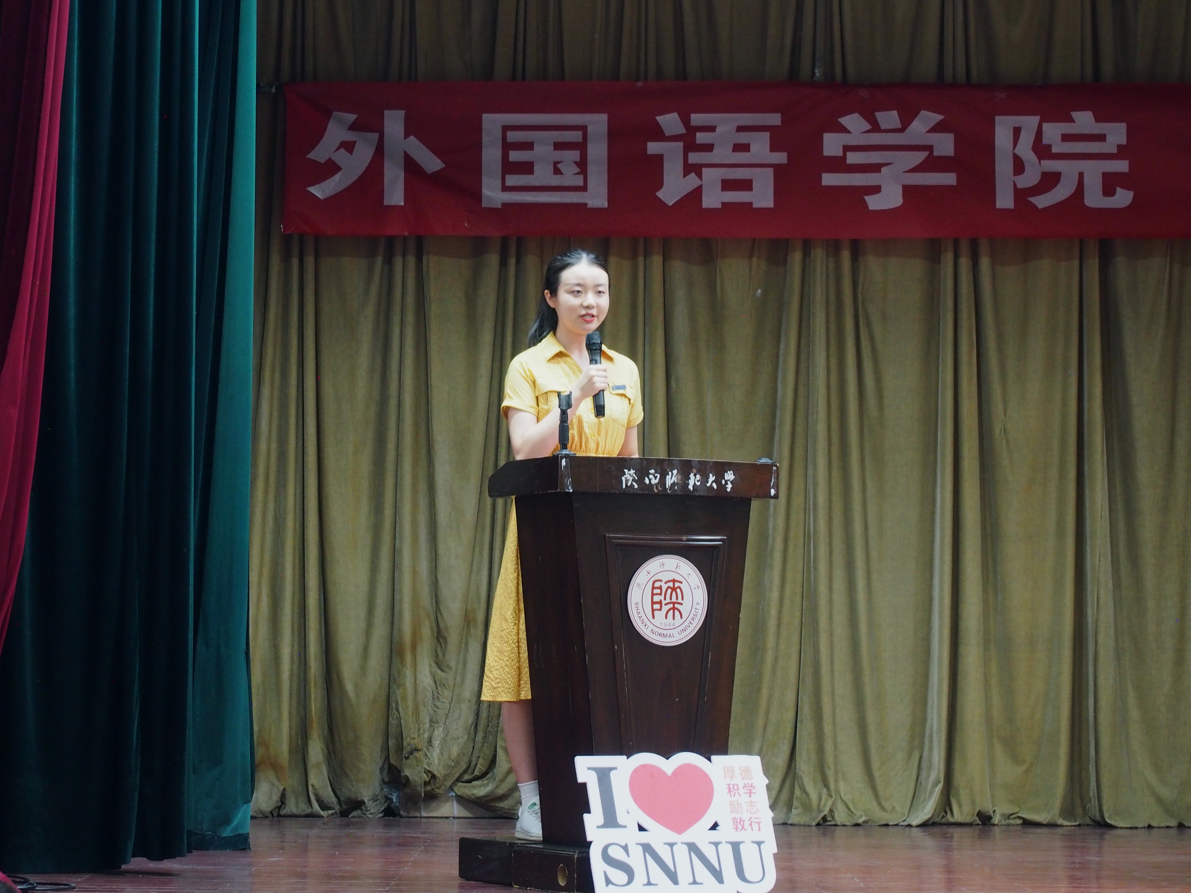 在校生代表2022级学科教学(英语)研究生王瑟艺同学分享了自己在外院的成长经历,并对各位老师的辛勤付出表示感谢。她鼓励师范生们掌握最新教学理论方法,成长为“四有”好老师。非师范专业的学生要未雨绸缪,积极和老师沟通,树立远大目标,注重综合能力培养。她鼓励大家培养国际化的视野和广阔的胸怀,用青春谱写最美的篇章。