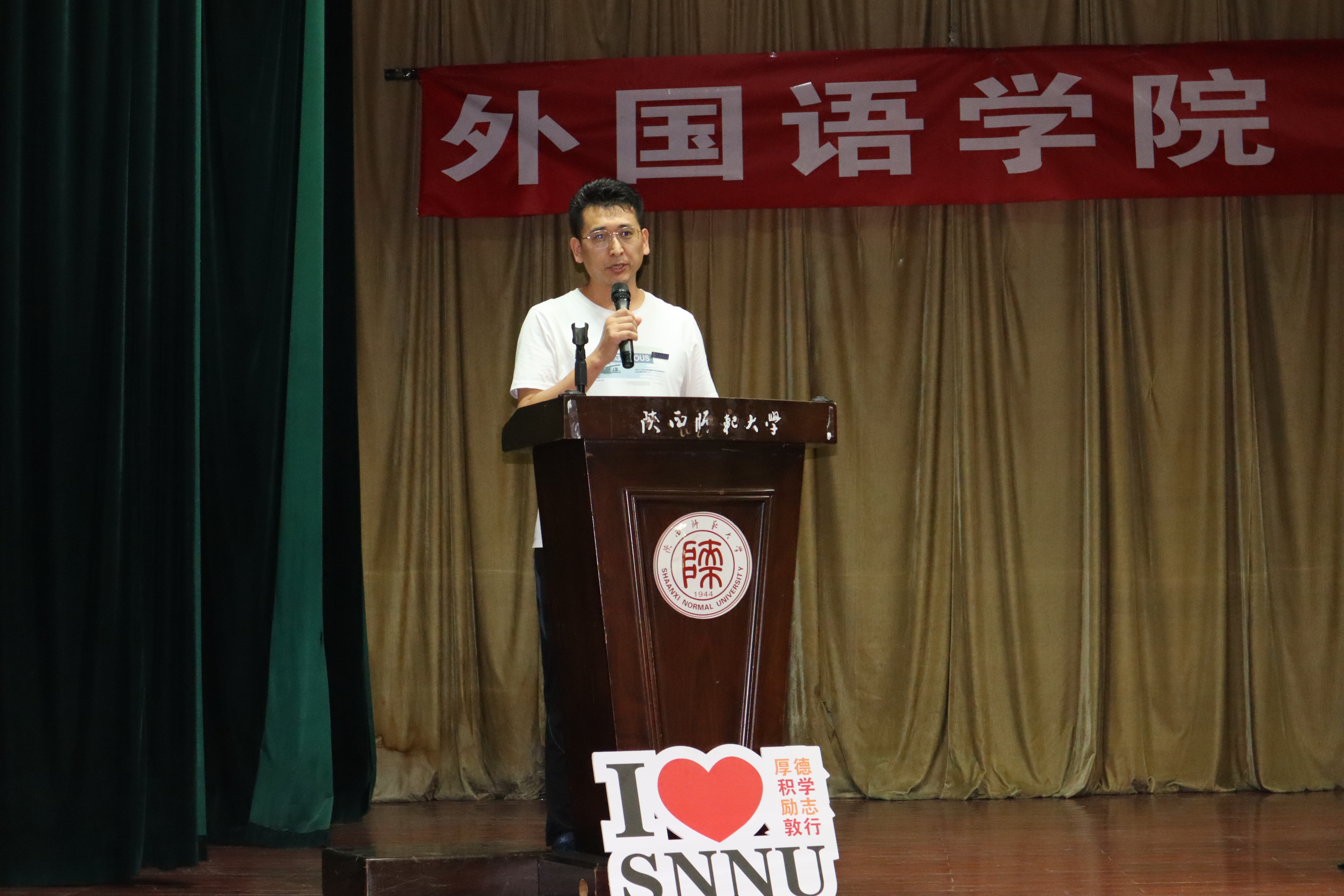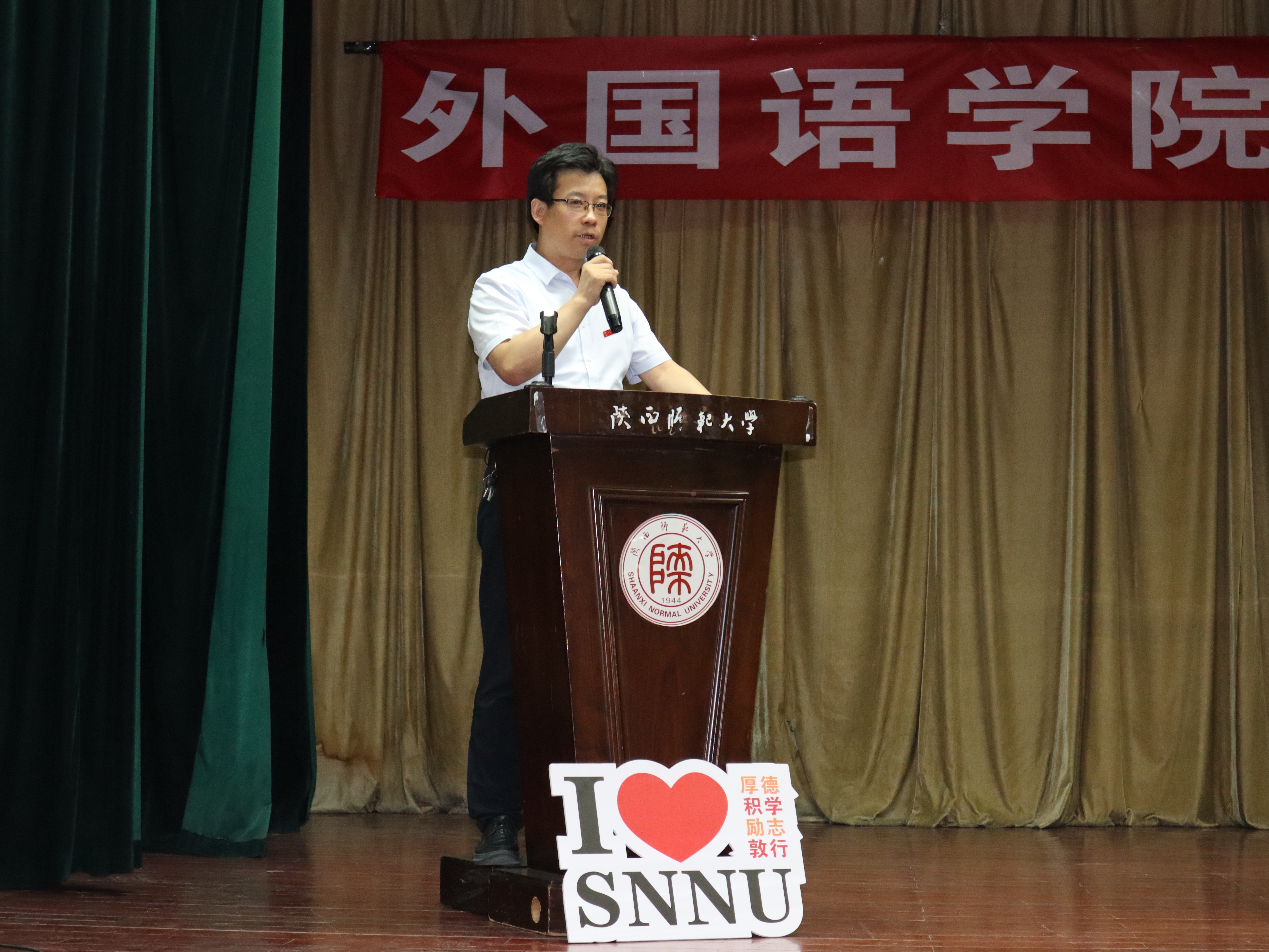 最后,院长刘全国教授发言。他对新生们表示表示欢迎,并以家长的身份为大家上好开学第一课。他从“仰望星空,志存高远”、“世界很大,家国为体”,“强心健体,拥抱生活”和“醉心学习,快乐成长”四个方面表达了自己的期望,鼓励大家进行自主、自助、自发的学习,内外兼修,开阔视野,和国家与时代同频共振。要涵养情怀,传播好中国声音,讲好中国故事,做博雅人、多语人、国际人、教育人、研究人的五位一体外语全人。
