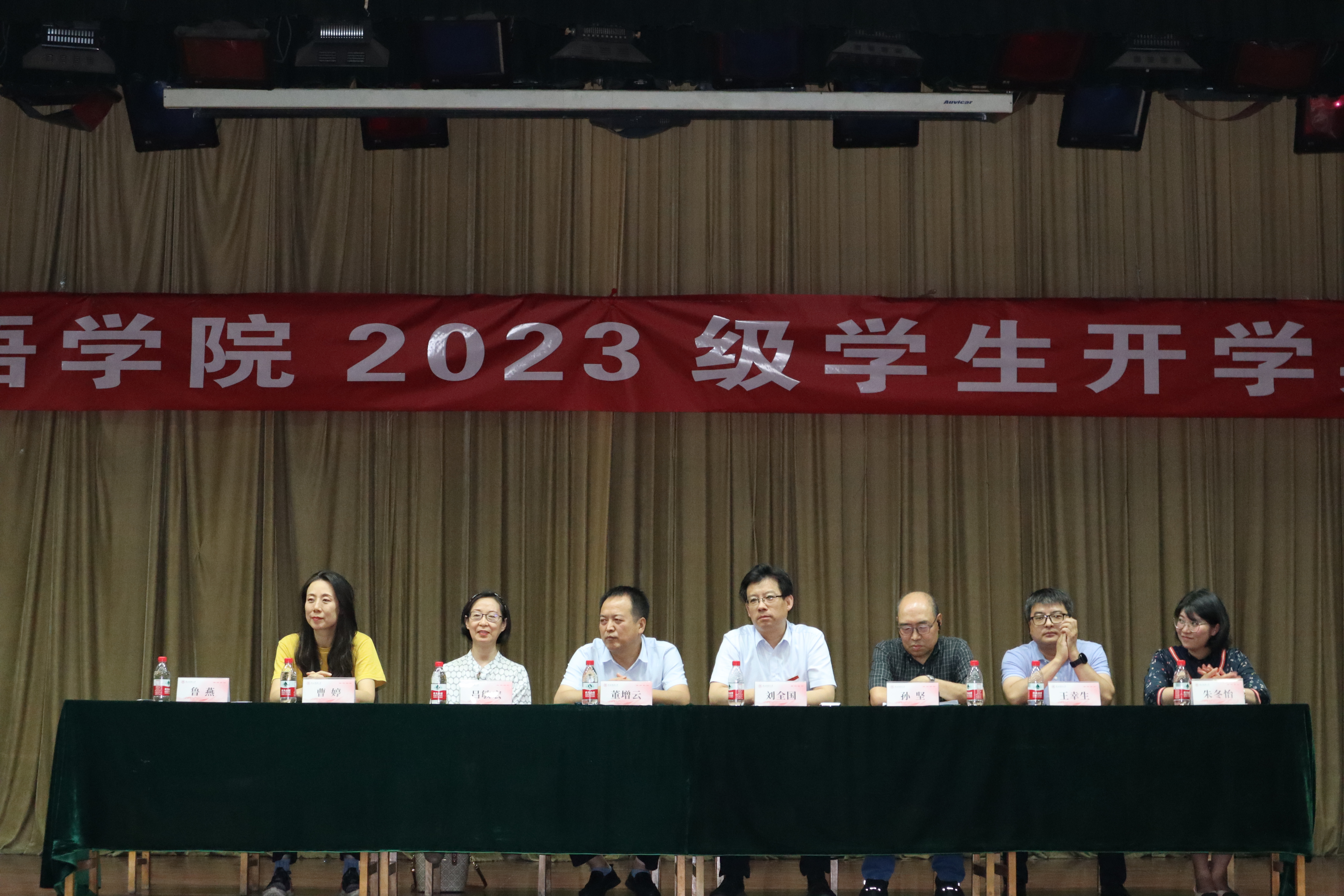 金秋九月,天朗气清。9月14日下午2:30,best365官方网站登录入口2023级学生开学典礼于积学堂隆重举行。best365官方网站登录入口院长刘全国,党委书记董增云,副院长孙坚、吕敏宏、曹婷、王幸生、朱冬怡,党委副书记鲁燕,公共外语教学与研究部主任马珂,俄语系主任孟霞,翻译系主任操林英,法语系主任王燕红,法语系副主任乔溪,MTI方向负责人巢玥,办公室主任陈斐,语言语音教学中心主任邢俊升,团委书记李丹,辅导员代表,研究生辅导员董洁,本科生新生辅导员刘阳以及2023级全体学生参加了本次典礼。