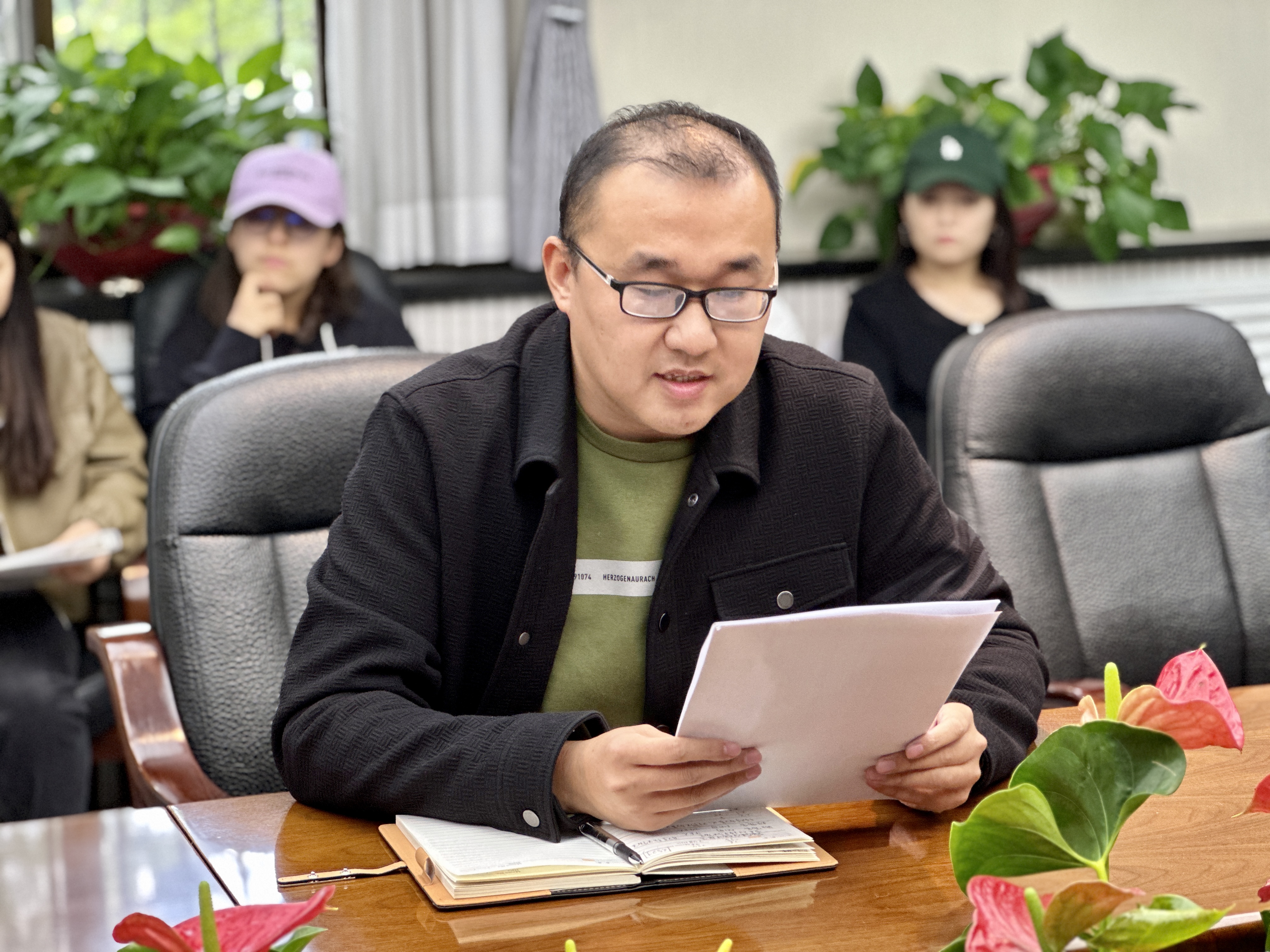 首先,李丹老师介绍了学院党员联系新生宿舍的整体概况,明确此项工作是学院学生党员在预备党员阶段重要的考察环节之一,旨在为学生党员发挥模范作用搭建平台,帮助新生尽快适应学校学习生活,同时也是学院深化党建带团建,团建促党建工作的重要抓手。接下来,她向党员提出联系新生宿舍的具体要求,并鼓励对接宿舍的党员要切实发挥“先锋带头、榜样引领、朋辈帮扶”作用,搭建新老生之间的沟通“桥梁”,引导新生树立强国有我的远大理想,加强新生对学校的归属感、对学院及专业的认同感,树立爱校荣校的深厚情怀,帮助新生尽快转变角色,适应大学生活,养成健康向上的良好作风。