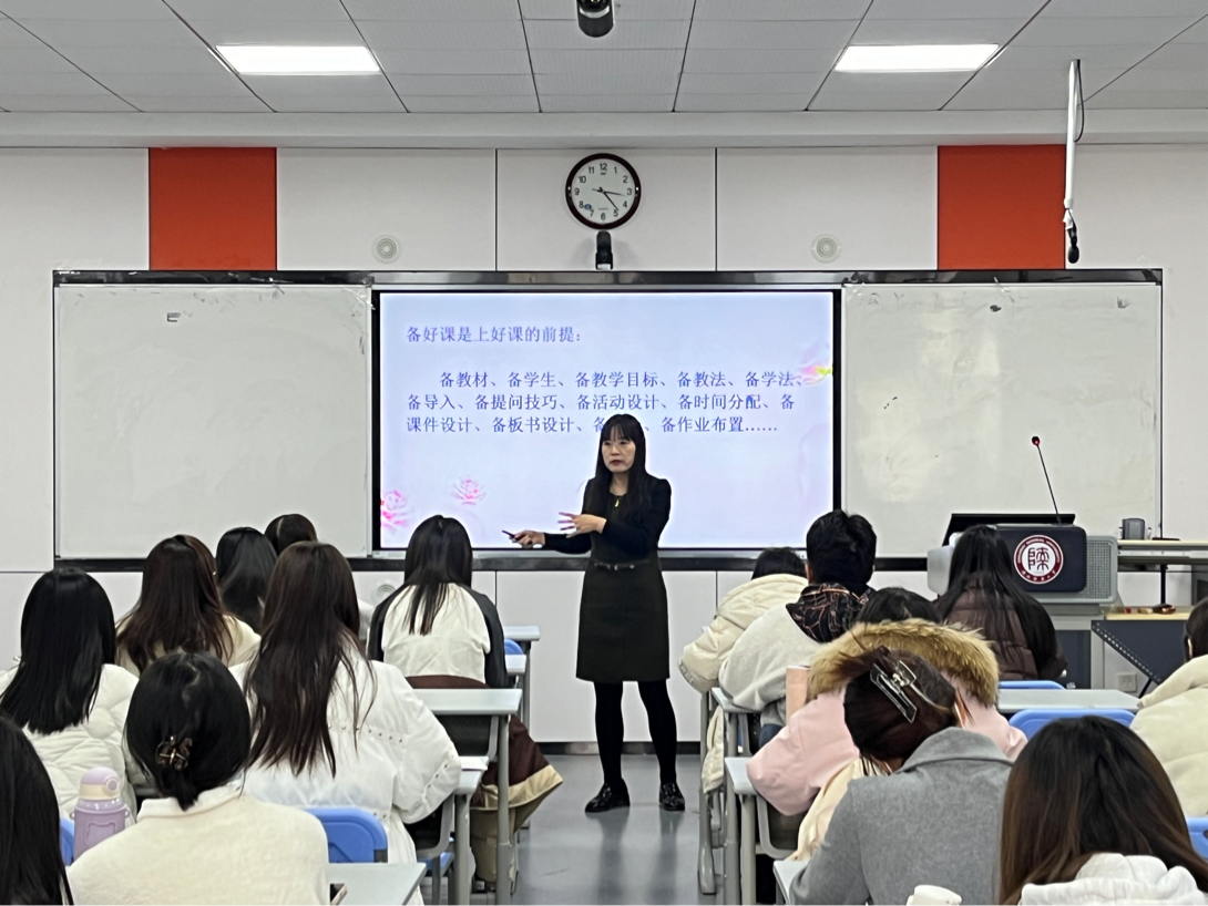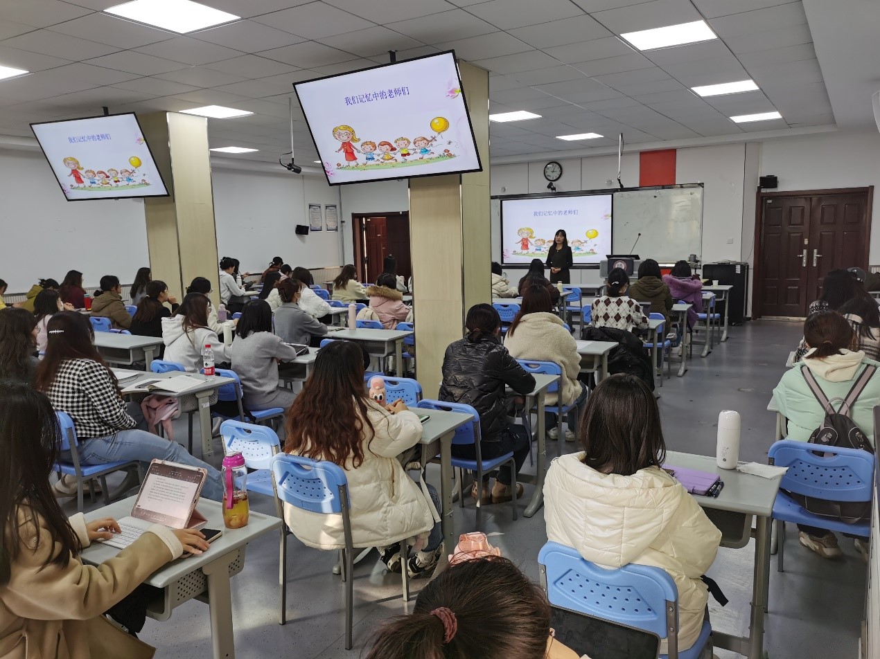 云雅峰老师首先以“我们记忆中的老师们”为引子和同学们进行互动,借用苏霍姆林斯基的教育名言和习近平总书记的“四有好老师”,提出了好老师的概念和标准。她强调了在职业发展中良好的人际关系和不断学习的重要性。她说:“在追求卓越的道路上,我们不能忽视人际关系的建立和自我能力的提升。”她鼓励学生们在教师岗位上保持积极的心态,勇于接受挑战,并持续学习和提升自己的能力。