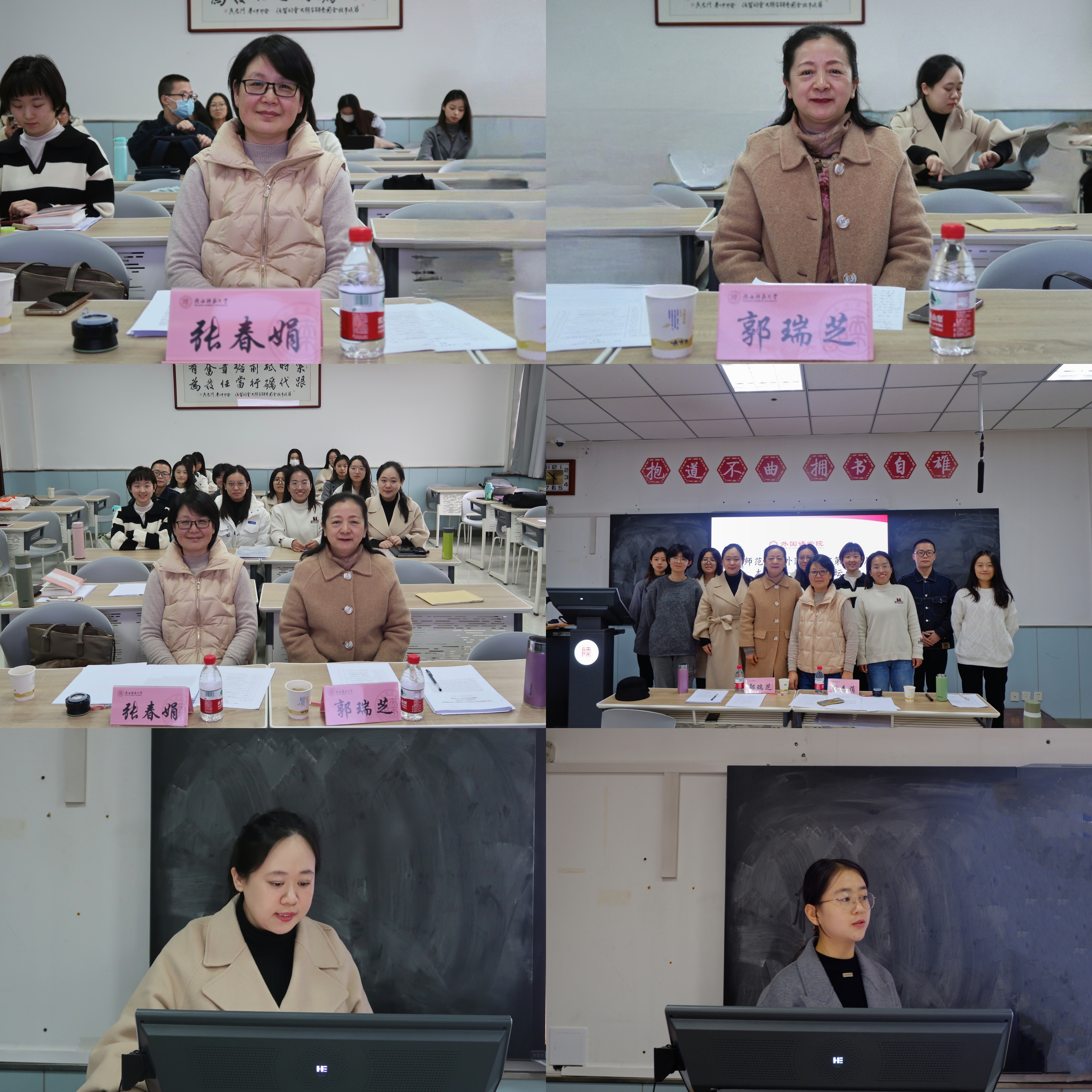 在此次论坛中,八名同学分别从不同方面对不同主题进行了汇报。本科生熊兴梦以“国家形象塑造视域下外宣纪录片中‘文化负载词’的英译探析——以《何以中国》为例”为题进行汇报。硕士生郭佳钰、马和艺、王璐、刘梦靓和董奥分别作了题为“目的论视角下歌曲翻译对比研究——以 The Impossible Dream 为例” “The Analysis of Subtitle Translation from the Perspective of Translation Shifts Theory—Take The Battle at Lake Changjin as An Example” “阐释学翻译理论下《芙蓉》英译本译者主体性研究”“李白诗歌翻译中译者主体性的三维转换分析”“葛浩文小说翻译的前景化语言英译策略研究——以《蛙》英译本为例”的汇报。博士生丁礼明、吕焱莘分别以“林语堂《朱门》中的西安想象”和“《万国公报》译者群体文化身份研究”为题进行了精彩分享。两位评委老师认真倾听,就论文的选题、结构和篇幅安排等方面提出了建议。