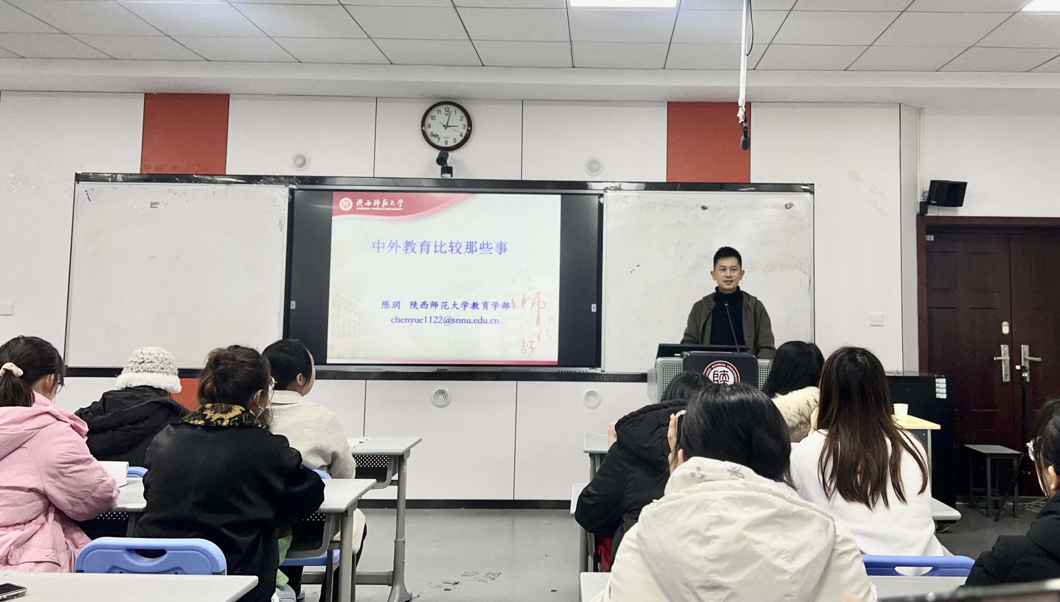 陈玥老师从比较教育学的研究对象出发,生动地讲述了比较教育的研究方法和层次范式、全球化时代比较教育的特点与价值、全球教育治理议题等方面的内容,引领同学们不断深入了解国际化背景下的教育发展。他以案例为线索,深入浅出地阐述中外教育制度的异同,强调全球化转变了比较教育的研究方向,从单向输入国外教育经验到借鉴国外经验和传播中国经验相结合的双向互动。最后他鼓励同学们,要不断拓展国际教育的视野,讲好中国教育故事。