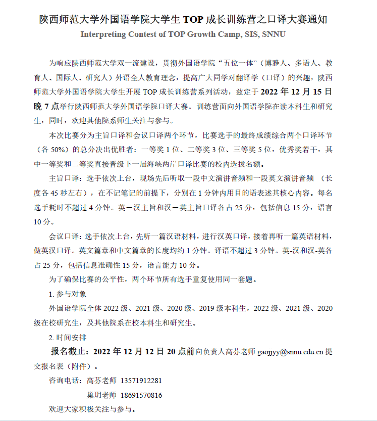 best365官方网站登录入口大学生TOP成长训练营之口译大赛通知